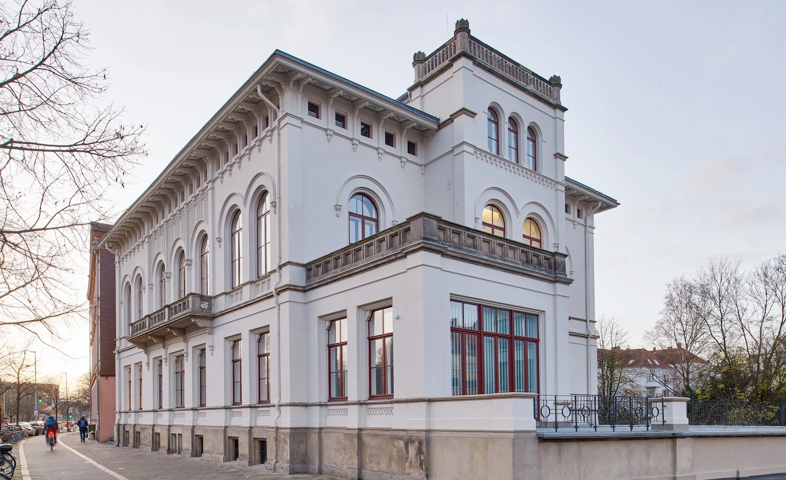 Mit ihrem markanten Wintergarten und der Aussichtsterrasse orientiert sich das Gebäude zur Herrenhäuser Allee und in Richtung des ehemaligen Schlosses in Herrenhausen sowie des Welfenschlosses. Heute wird die denkmalgeschützte Villa durch die Leibniz Universität Hannover genutzt.