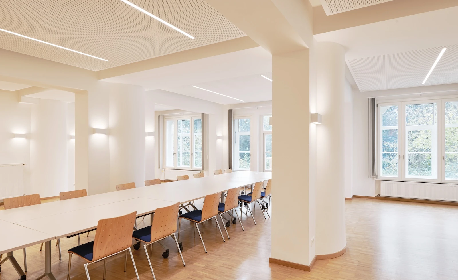 Leitgedanke war es, die Fassadensprache der Architektur Tramms wieder klar herauszuarbeiten und das Gebäude in seinem ursprünglichen Erscheinungsbild weitestgehend wiederherzustellen – bei gleichzeitiger Anpassung an zeitgemäße Anforderungen an Nutzung, Energieeffizienz und Gebäudetechnik.