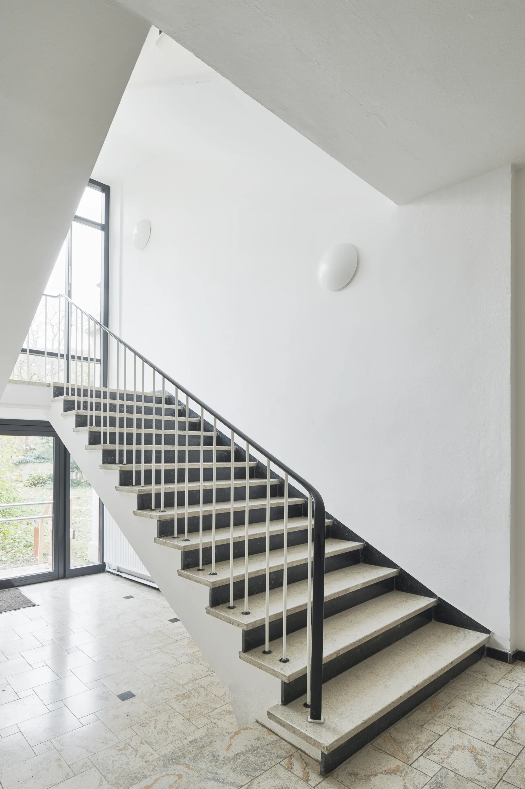 Das im Stil der 1950er-Jahre errichtete Treppenhaus wurde instandgesetzt und sensibel in das Gesamtkonzept integriert.